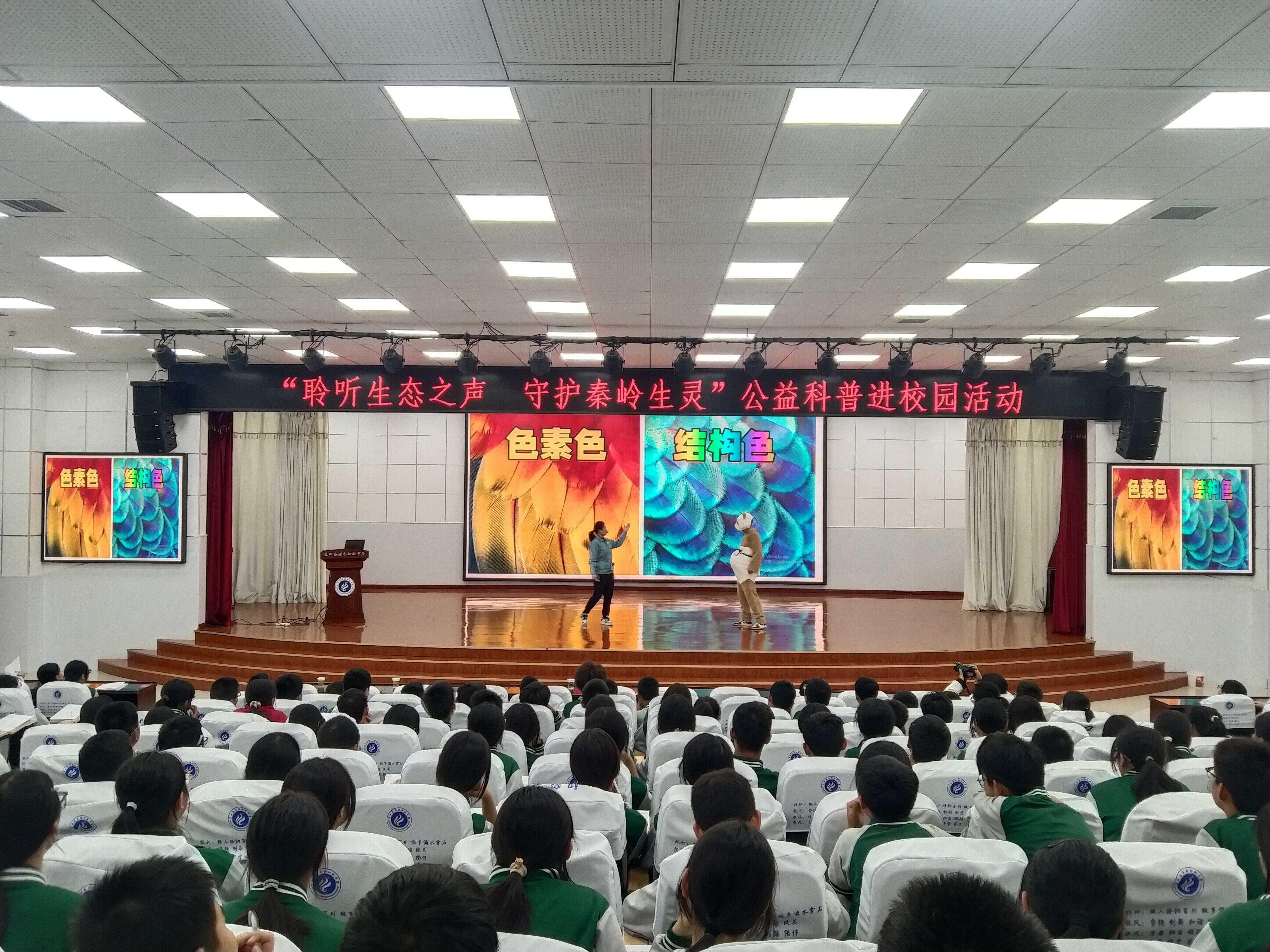 活动过程中,秦岭国家植物园的专家以《种子的72变》为题,通过展示种子标本,揭秘秦岭植物适应环境的生存智慧。同学们惊叹于植物种子的多样性,更了解到“翅果油树”等珍稀物种的保护现状。秦岭大熊猫研究中心带来的科普剧《听七仔和保育员讲八卦》将现场气氛推向高潮。剧中,全球唯一圈养棕色大熊猫“七仔”的卡通形象与保育员趣味对话,生动演绎了动物保护,爱护鸟类等知识。孩子们在欢笑中深刻认识到“秦岭生态走廊”对生物多样性的重要意义。