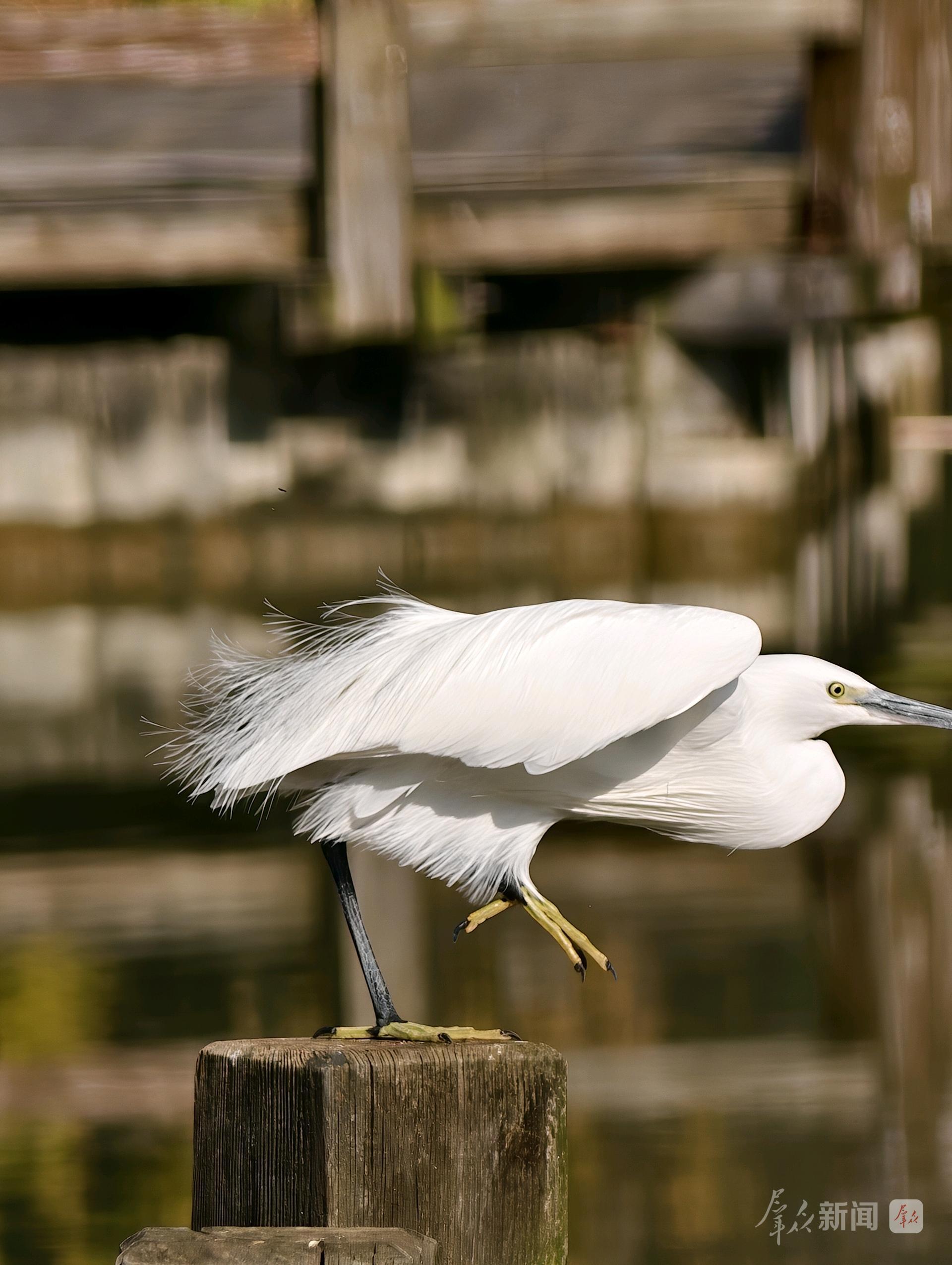 11月24日,记者在西安浐灞国家湿地公园抓拍“猎手时刻”,一只白鹭紧盯猎物,蓄势起飞。